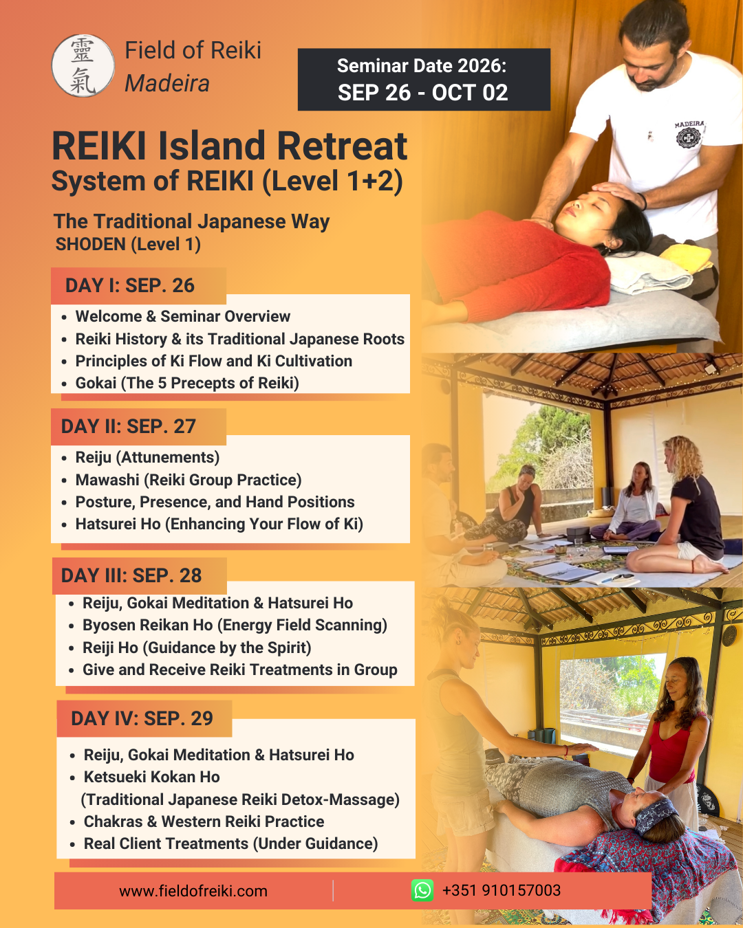 Seminar Fee (7 days Reiki Levels I and II): USD 997